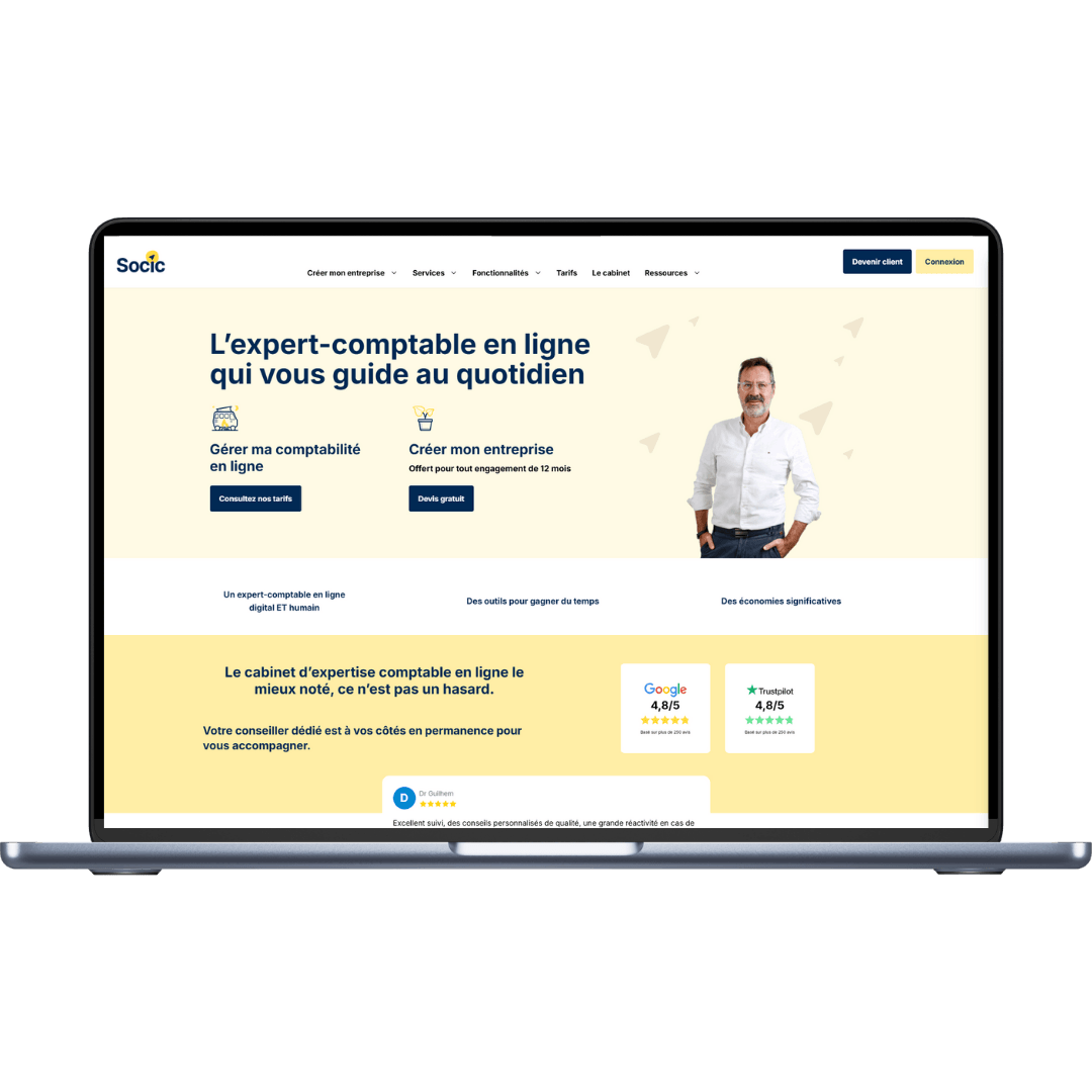 Les honoraires de création te sont offerts chez Socic pour un abonnement de 12 mois de comptabilité.